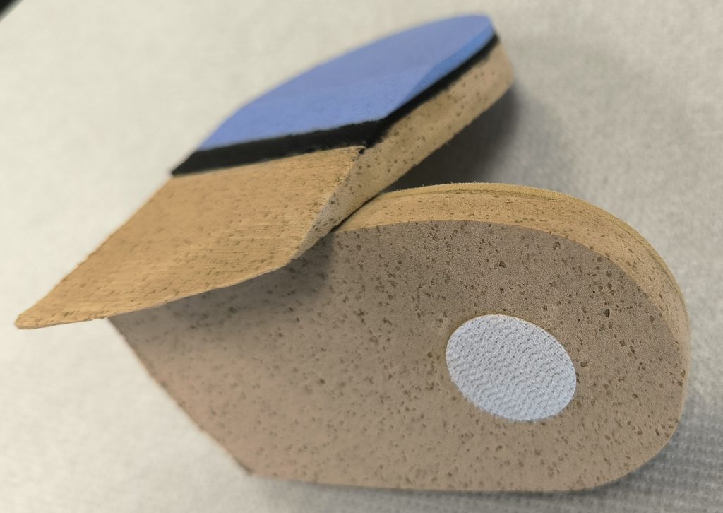 Lorsque le port de semelles orthopédiques n’est pas possible ou pas souhaité, nous proposons des talonnettes de compensation recouvertes de matériaux adaptées à vos besoins. Ces dispositifs simples et efficaces permettent de compenser une inégalité de longueur des membres inférieurs et de soulager les déséquilibres posturaux associés. Faciles à insérer dans des chaussures ou des chaussons du quotidien, les talonnettes offrent une solution rapide et confortable pour améliorer votre stabilité et réduire les douleurs éventuelles.