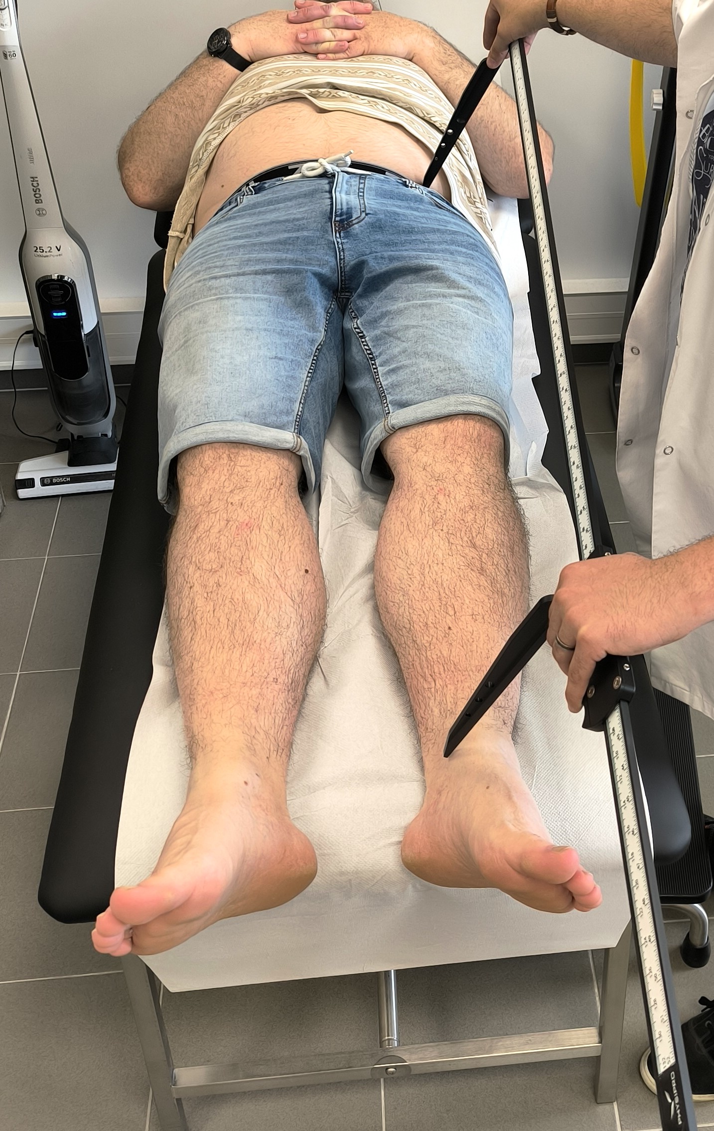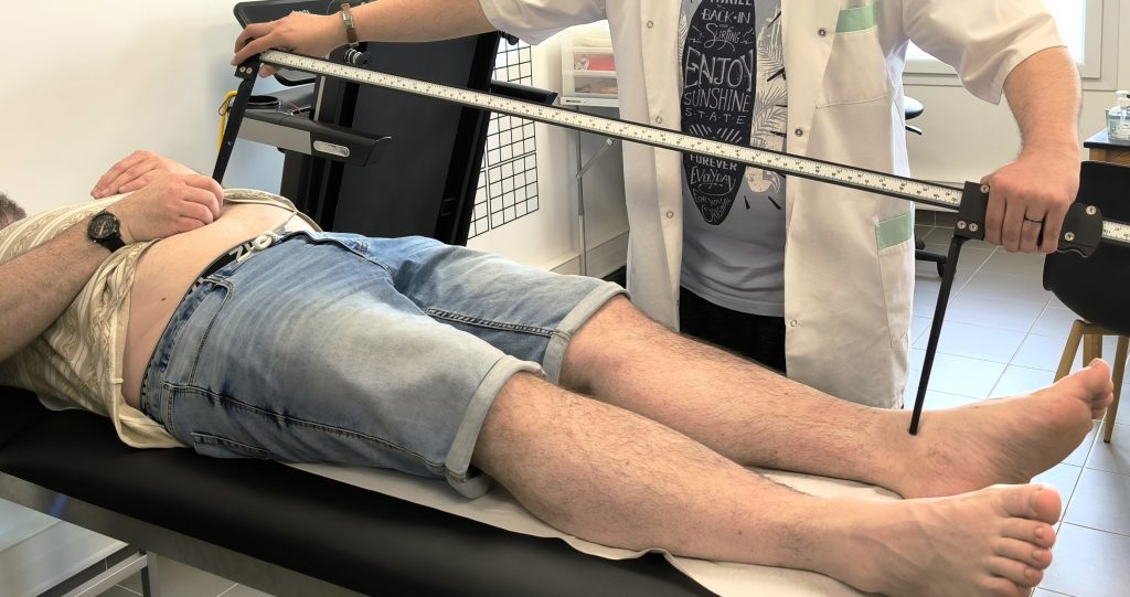 La règle anthropométrique : cet outil simple et fiable permet de mesurer avec précision les longueurs (entre différents repères osseux et anatomiques) afin de détecter une éventuelle inégalité de longueur.